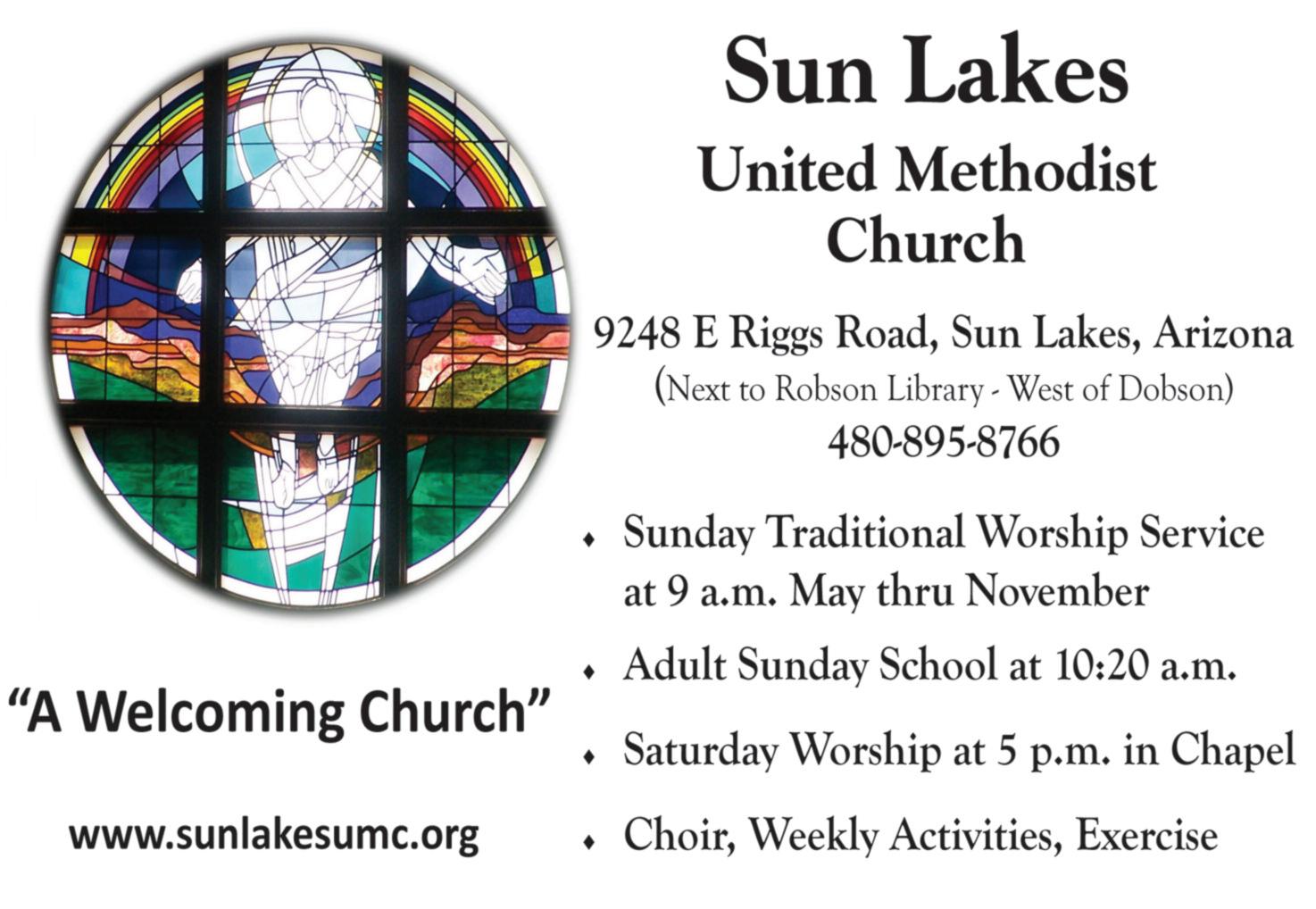 Sun Lakes United Church of Christ is at 25635 S. Sun Lakes Blvd. in Sun Lakes. For more information, call (480) 895-6317.