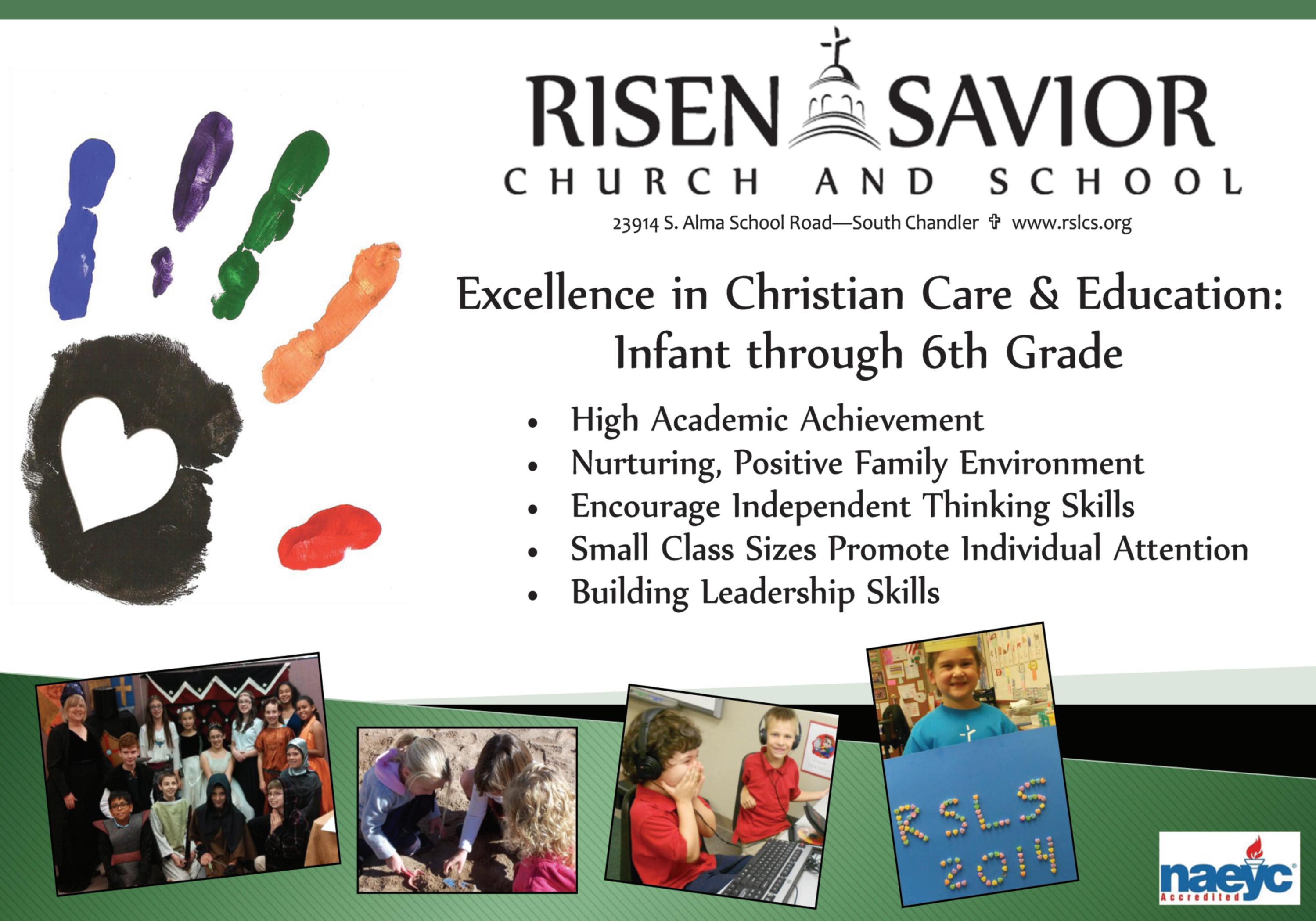 Risen Savior Lutheran Church 23914 S. Alma School Rd., Chandler Info: Joan, (480) 883-8871
