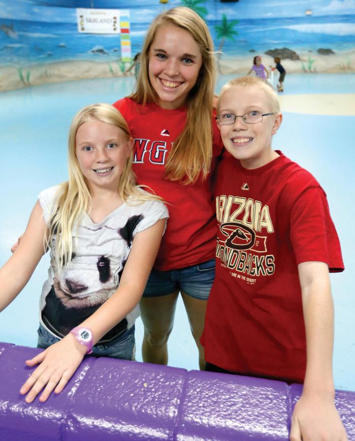 CHILLING OUT: Jacee Kuzmich, Ashley Connell and Ben Kuzmich stop in for a few hours of cool fun on a hot, steamy Arizona summer day.
