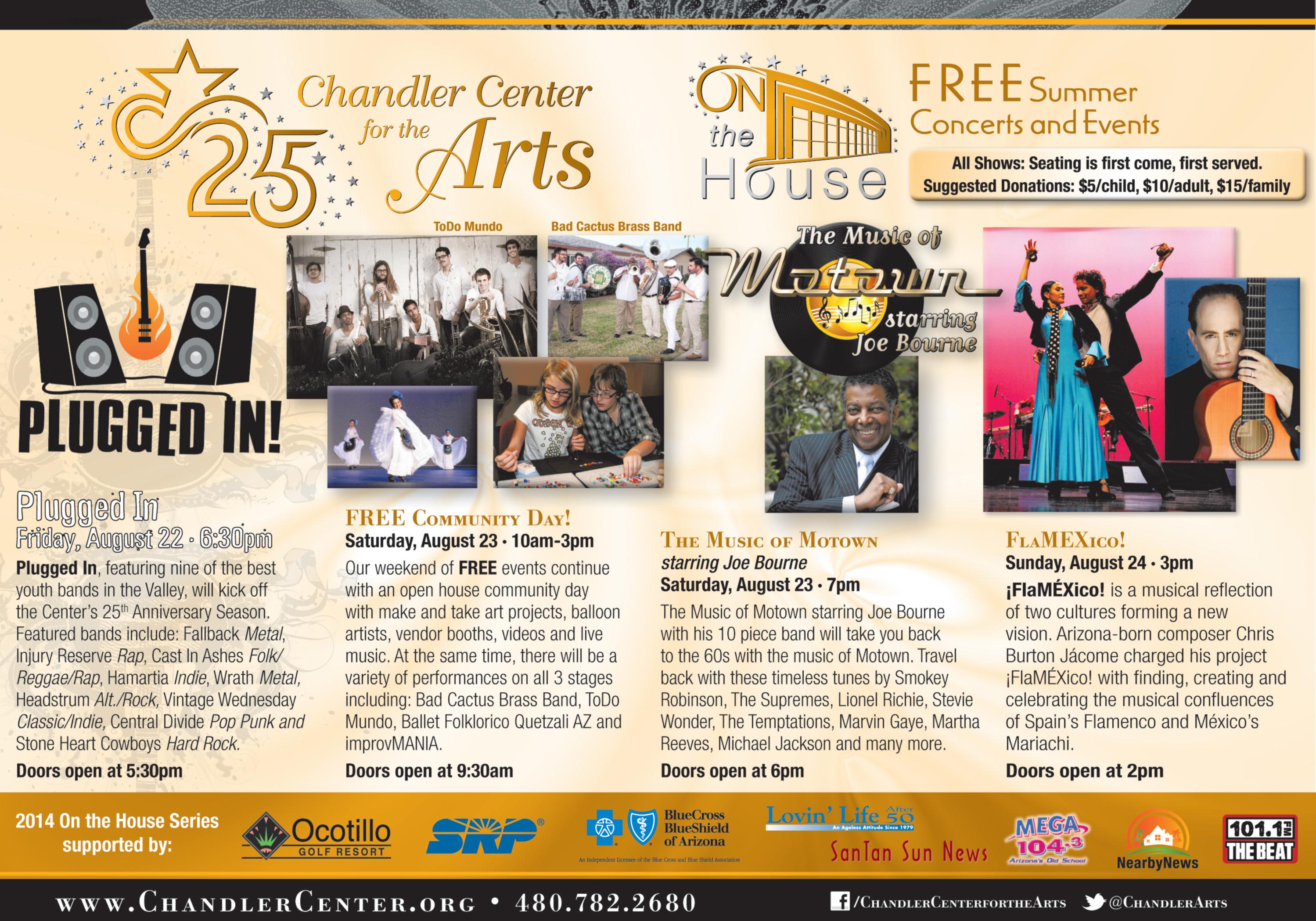 For more information on the Chandler Center for the Arts and upcoming events, visit www. chandlercenter.org.