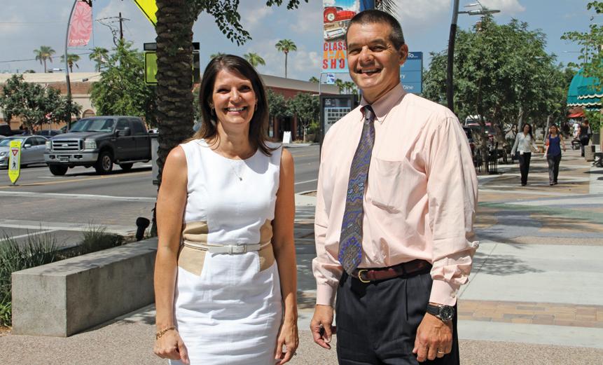 Kim Moyers and Jeff Kulaga have different roles, but the same goal of a vibrant downtown Chandler. City of Chandler employee Moyers is tasked with implementing City Council goals for the future, including attracting developers and businesses, managing city infrastructure issues and acting as a one-stop liaison for downtown businesses and City services. She began her job in April with a broad range of experience from the Town of Queen Creek, where she served as manager of the Queen Creek Incubator and spearheaded the Town Center Committee to increase the employment base. Her experience also includes serving as executive director of the Downtown Association/Small Business Development Center in Kokomo, Indiana, where she directed and supervised the association, which consisted of more than 2,000 employees and 170 businesses.