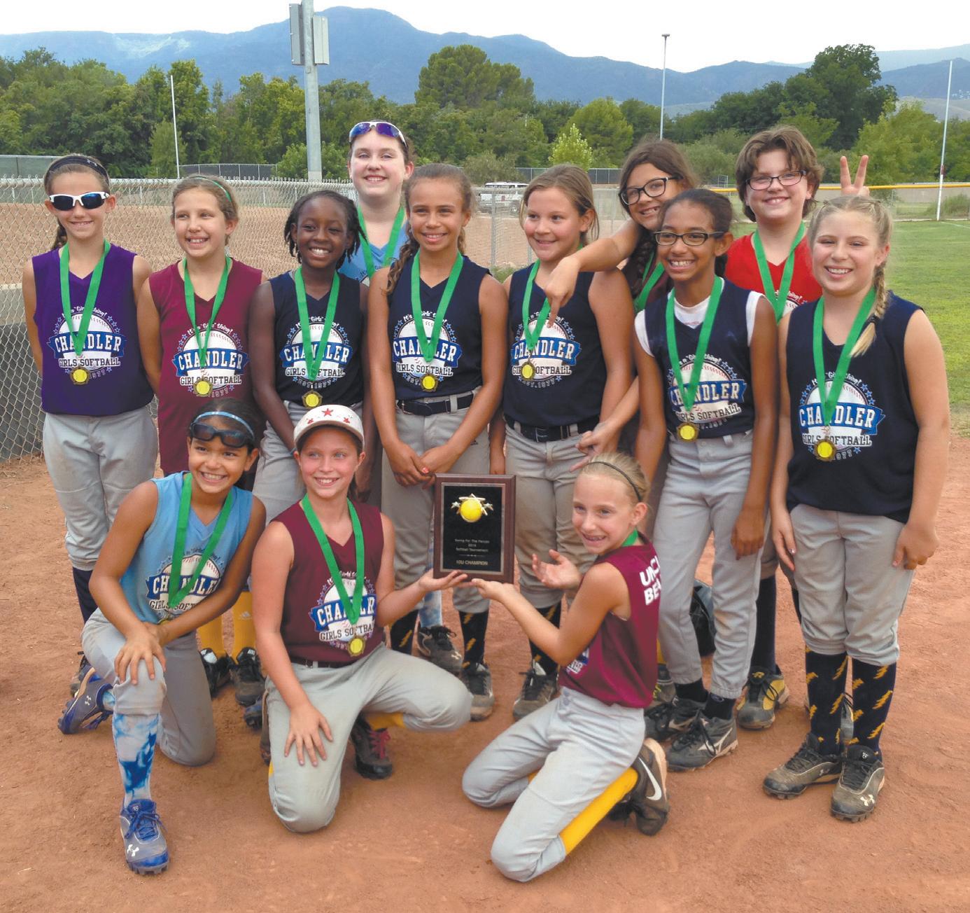 PLAY BALL: The Chandler All-Stars, a team of select players from the Chandler Girls Softball League 10U Division, are the winners of the second annual Swing for the Fences Softball Tournament, held recently in Cottonwood. The All-Stars went undefeated over the course of the two-day tournament to claim the championship. Team members include Alyssa Dean, Tristin Jamar, Kaylee Kates, Sage Keller, Piper Lloyd, Zoe Lloyd, Giselle Nunez, Krystyna Pagel, Kyndra Rojo (MVP), Emmalynn Skaff, Alison Staples, Kate Vance and Taylor Vance; coaches are Bill Staples, Kyra Staples and Cory Vance. Submitted photo