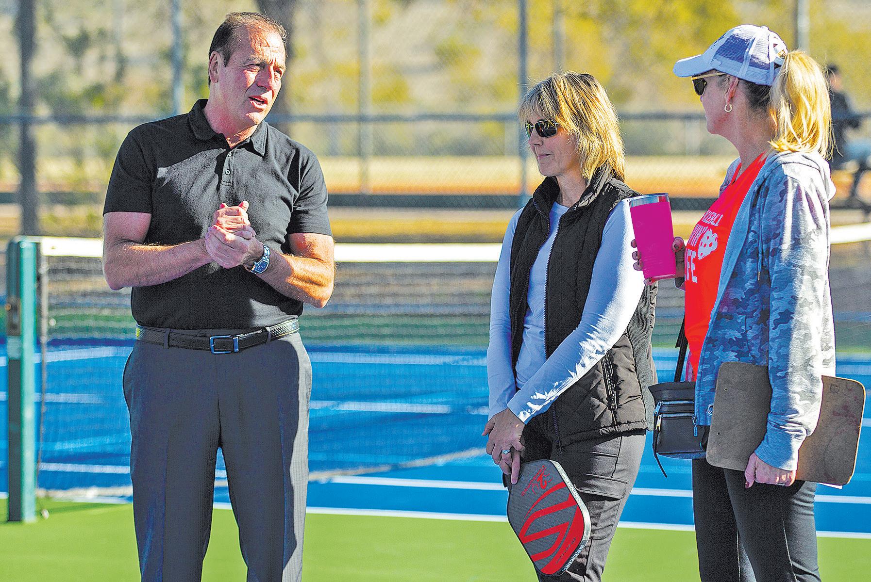 The new dual-use pickleball-tennis courts at Desert Foothills Park have been open for more than a month but last week, the city celebrated with a formal ribbon a facility that came to fruition because of the efforts of two local residents.