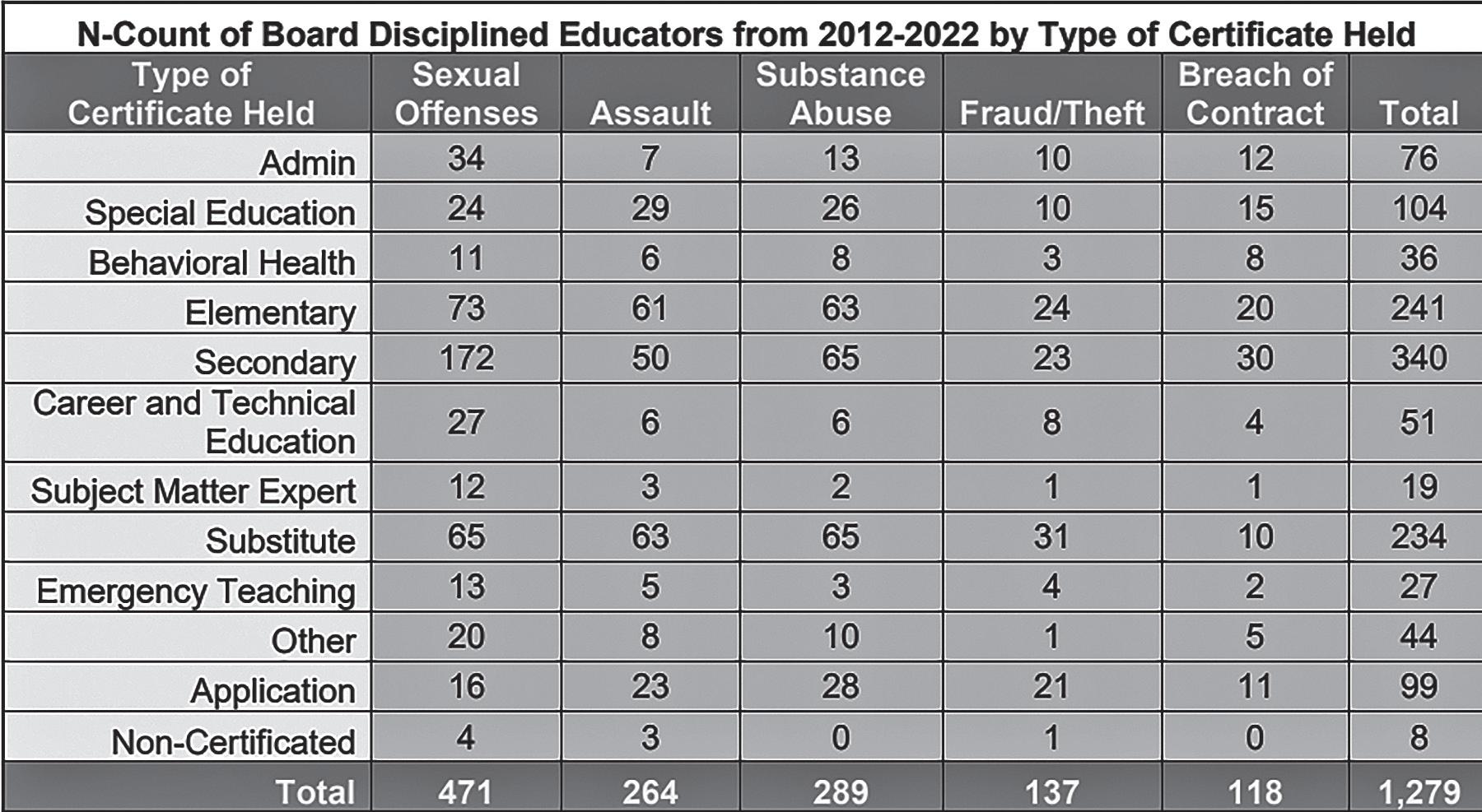 Fewer educators with substitute, special education, elementary and behavioralhealth certificates are involved in sexual misconduct cases.