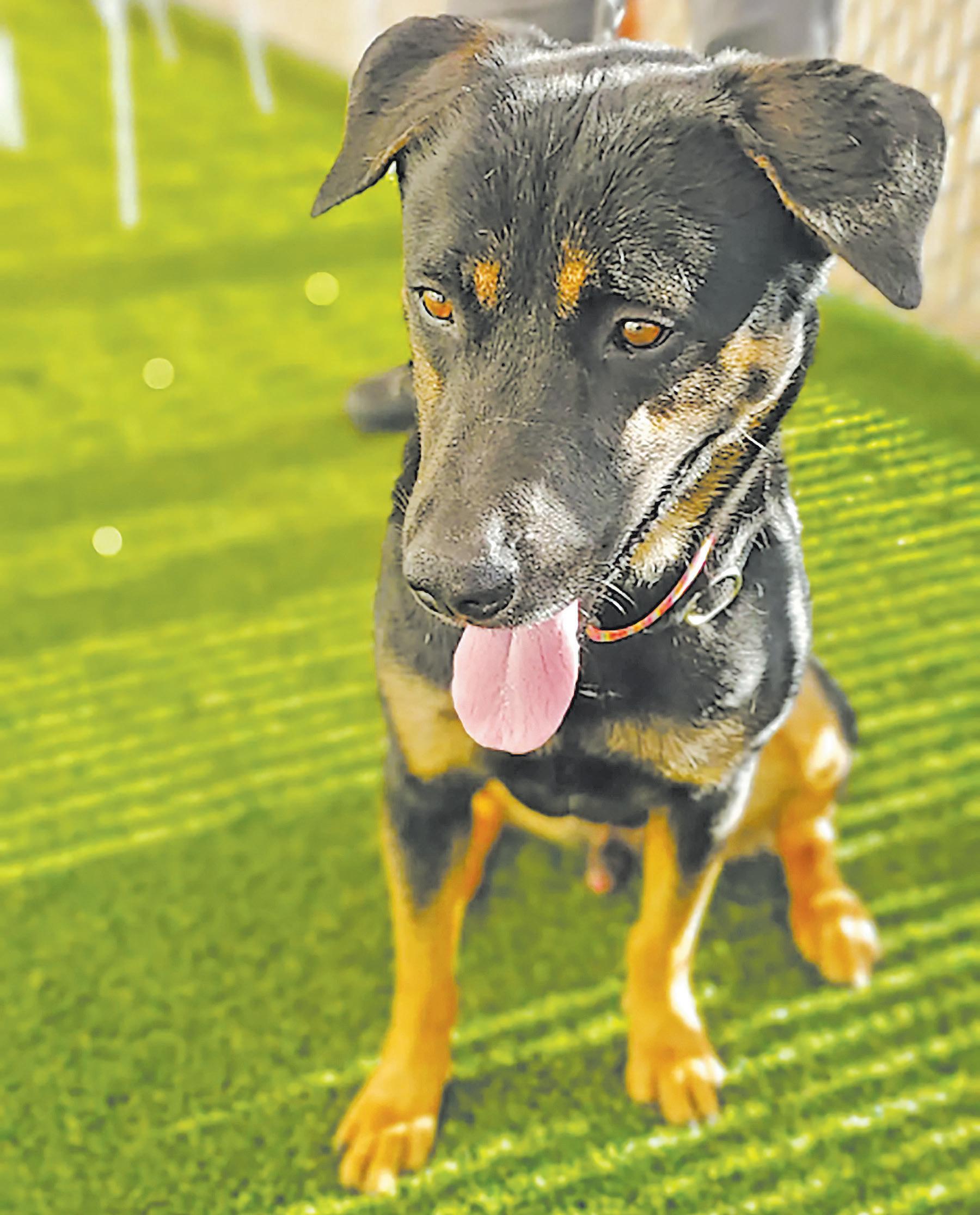 Described as “a giant pup who loves to run zoomies in the yard and play outside, but what he really loves is getting atten tion,” the 3-year-old Rottweiler-mix was photographed smil ing as his head was being scratched.