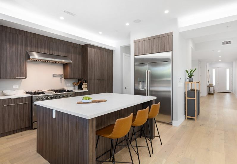 “This turnkey gorgeous home was built with class in mind,” says agent Sam Araghi. “Located in the highly coveted North Kentwood neighborhood, this 4bd/4.5 bar modern home has panoramic city and mountain views. The open floor plan and soaring ceiling height is perfect for hosting especially with the wine cellar. Enter the gourmet kitchen with center island and find two walk-in pantries. Enjoy the scenery with 3 balconies and a spacious deck. All bedrooms are en-suite with the master boasting a large steam shower which connects to a private deck in this open concept home. The bathroom in the primary suite includes a soaking tub and a separate glass shower. Step into the hedged backyard to find a pergola and pool. The home is on a quiet street but just a short distance to The Runway, Whole Foods, restaurants and more.