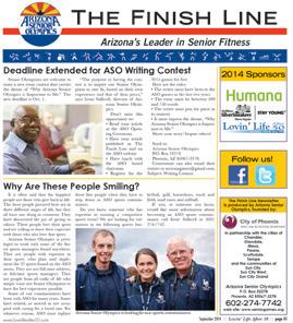 TheFinish Line, the Arizona Senior Olympics’ newsletter, is published monthly. It is sent out to an email list and can also be found at Walgreens stores throughout the state (in the racks at the front door).