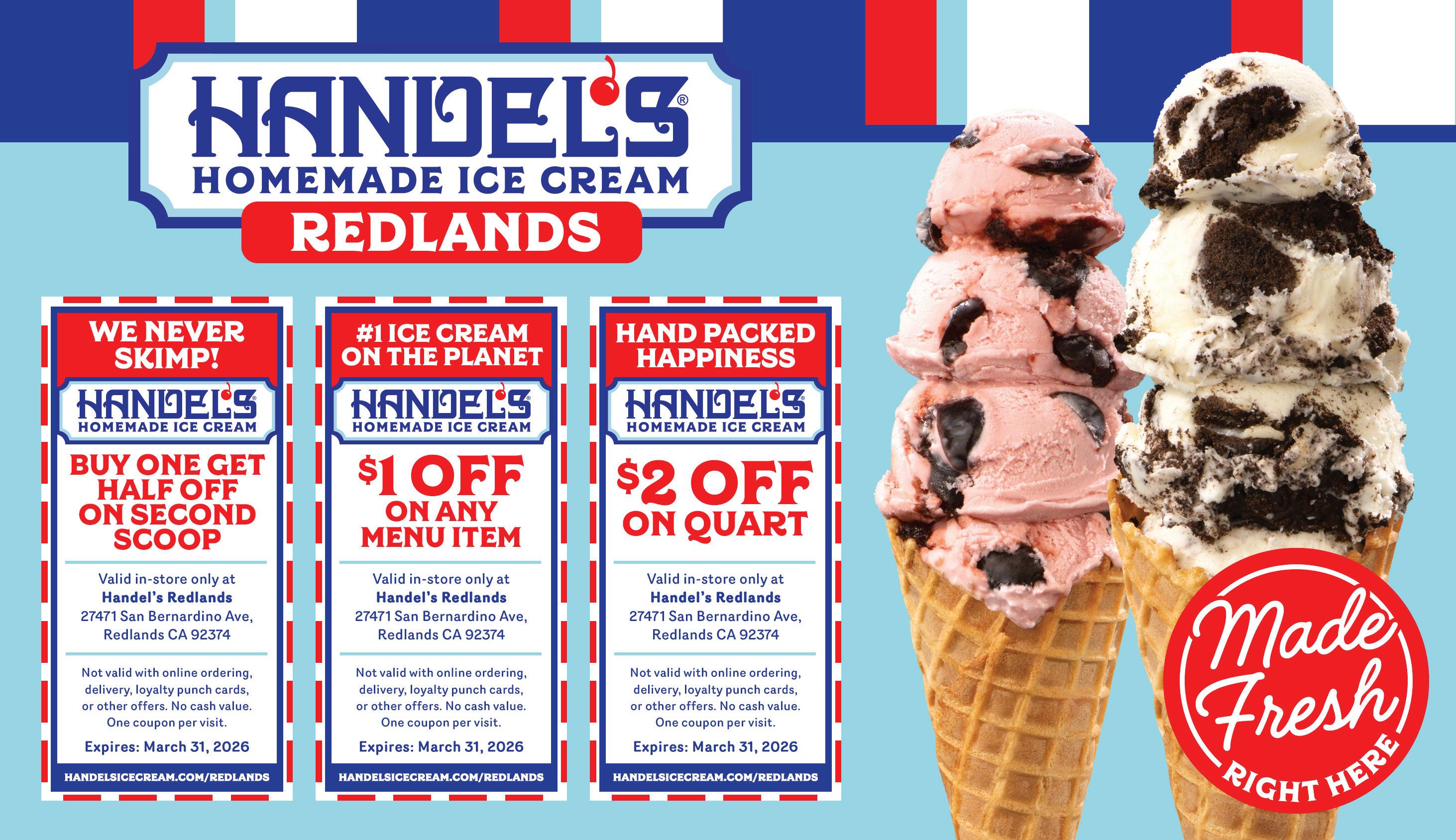 27471 San Bernardino Avenue, Redlands 909-265-9204 handelsicecream.com a’ la Minute Ice Cream 19 E. Citrus Avenue, Redlands 909-307-3751 alaminuteicecream.com