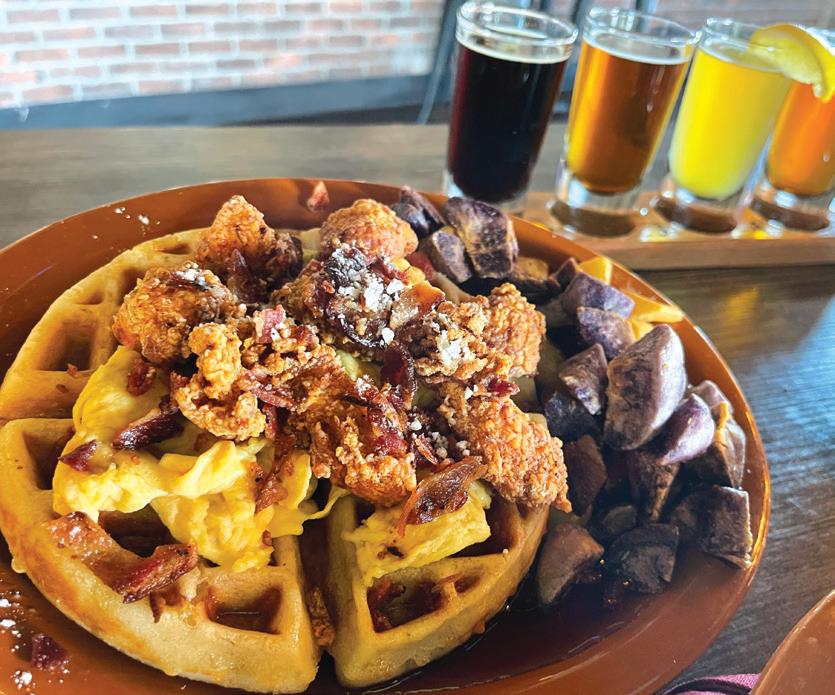 Between 10 a.m. to 3 p.m., guests can dine on Pedal Haus Brewery’s take of fried chicken and Belgian wa es topped with warm berries, maple bu er and tru e hot honey. Don’t forget to peruse the variety of beers and brunch cocktails on the menu to pair with the savory dish.