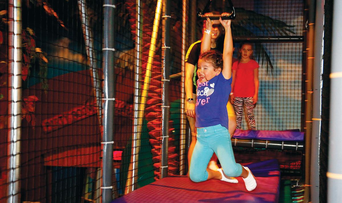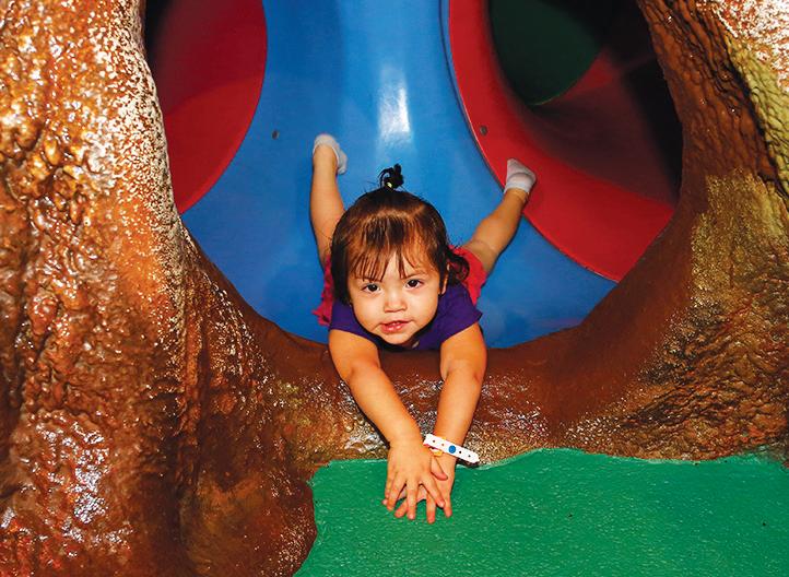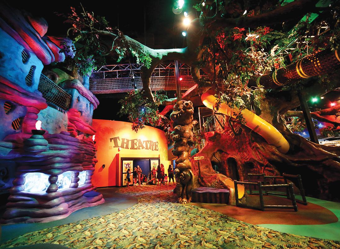 While the bigger kids have the run of the massive tree with four levels of fun, toddlers 3 and younger have their own area to play with parental supervision. Extra seating has been added for parents to relax while kids frolic throughout the enormous tree with mazes and slides.