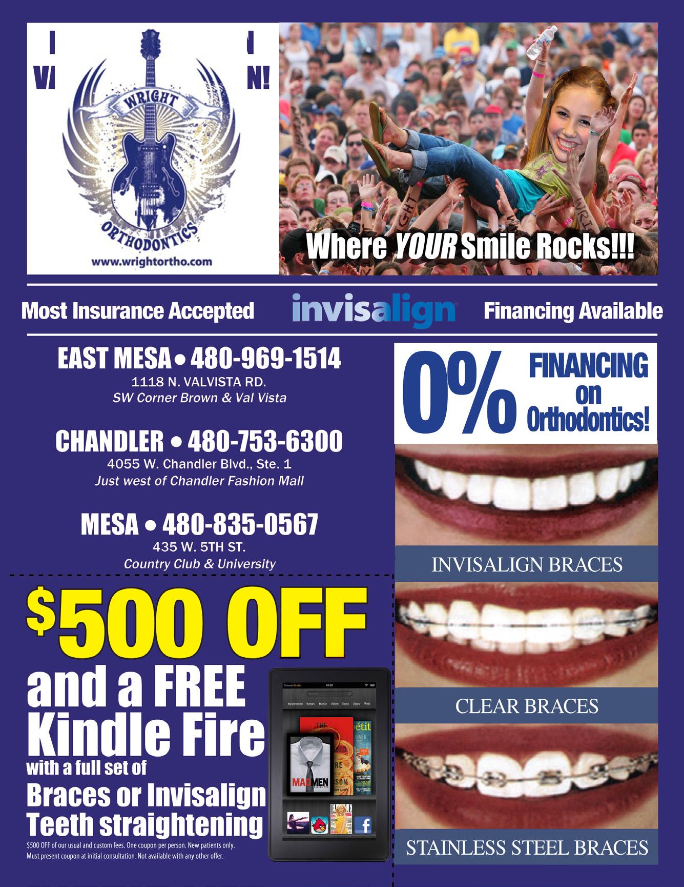 Wright Orthodontics has offices at 1118 N. Val Vista Dr., and 453 W. Fifth St., Mesa, with additional locations in Chandler, Litchfield Park and Peoria. Visit www.wrightortho.com or call (480) 969-1514 for additional information.