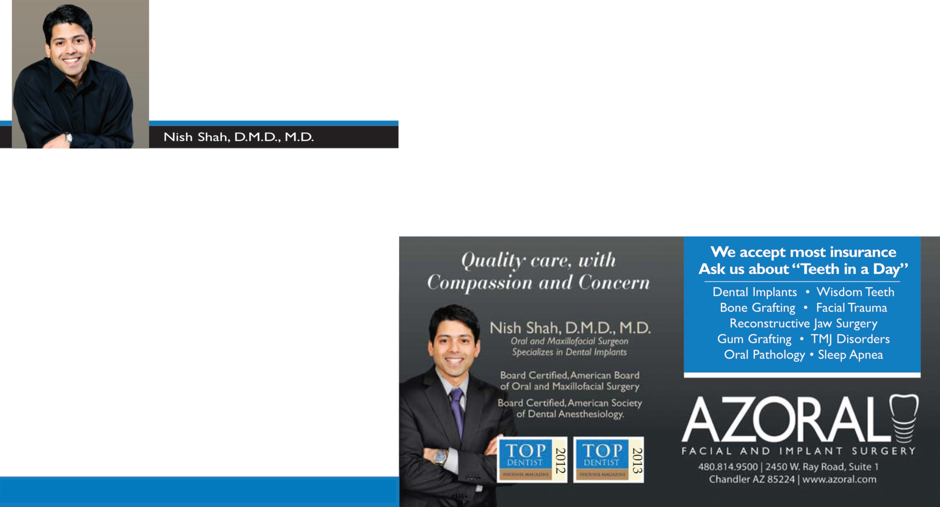 Contact our office (480) 814-9500 to schedule your consultation with Dr Nish Shah and visit our website www azoral com for all our services provided.