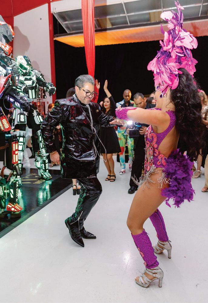 Held in January 2023 at the Jet 1 Hangar at the Naples airport, Wilfredo Emanuel celebrated the launch of his eponymous magazine, WE World, with over 300 VIP clients, friends and colleagues. Surrounded by Emanuel’s signature black and gold colors, guests enjoyed aerial artists, food stations and an ice sculpture dripping onto a seafood bar before Emanuel emerged from a Gulfstream jet accompanied by his well-dressed dogs, showgirls, his partner and beauty industry expert Gary Harlan, and fireworks.