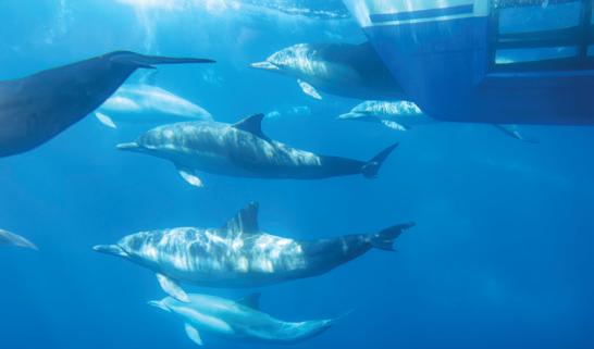 Embark on a 2.5-hour excursion aboard the Manute’a catamaran for an eye-to-eye underwater viewing experience. Or book an open-sea adventure aboard smaller vessels placing you close to marine wildlife. Schedule a whale watching excursion at dolphinsafari.com.