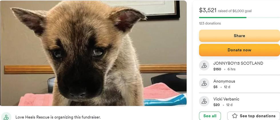 GoFundMe says help for animals is one of its fastest growing categories, with over $50 million raised for dogs and cats, including $1.8 million donated this year. Among the recipients is Gilbert-based Love Heals Rescue, which wants for $6,000 to help Pumpkin, a puppy with the often-fatal virus parvo. (Courtesy GoFundMe.com)