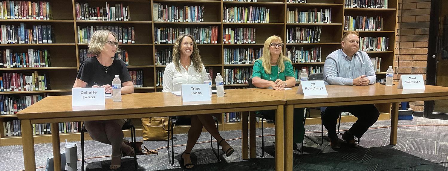 by Bill Spence by Bill4Gilbert2020 Gilbert Public Schools Governing Board candidates who attended the forum last week were, from left, Collette Evans, Trina Jonas, Jill Humpherys and Chad Thompson. (Cecilia Chan/GSN Staff)An edition of the East Valley Tribune