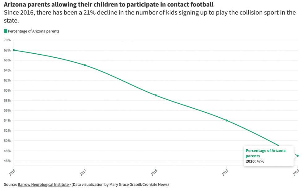 their heads too many times, they’re go ing crazy, they’re killing their wives, they are taking their lives type of stuff. So the concussion rap has gotten very bad. So that push away from letting your kids play has gotten extremely large.”