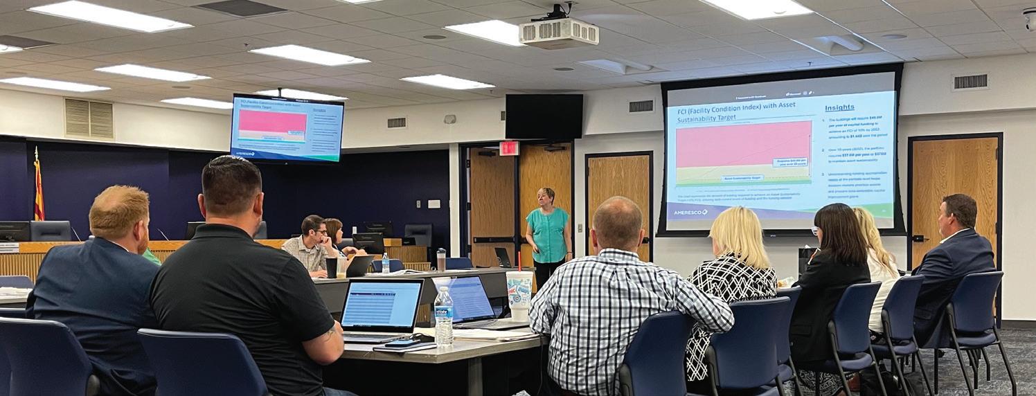 Bonnie Betz, assistant superintendent of business services, at the May 9 board retreat. An override, which GPS is now referring to as a “budget continuation,” allows school districts in Arizona to increase their maintenance and operations budgets up to 15%. The M&O budget pays for day-to-day expenditures such as salaries, supplies and utilities.