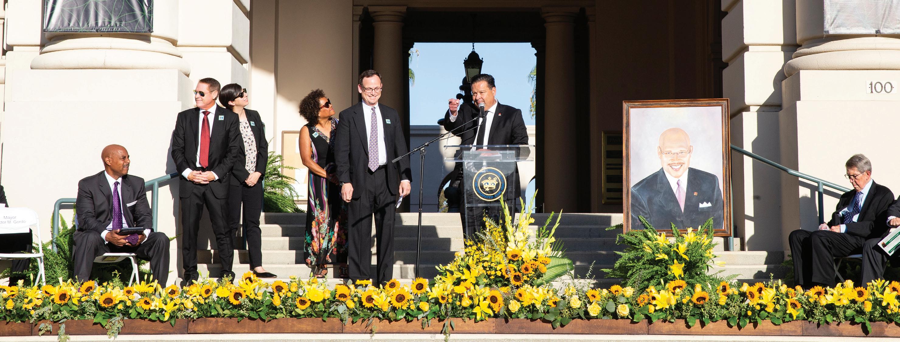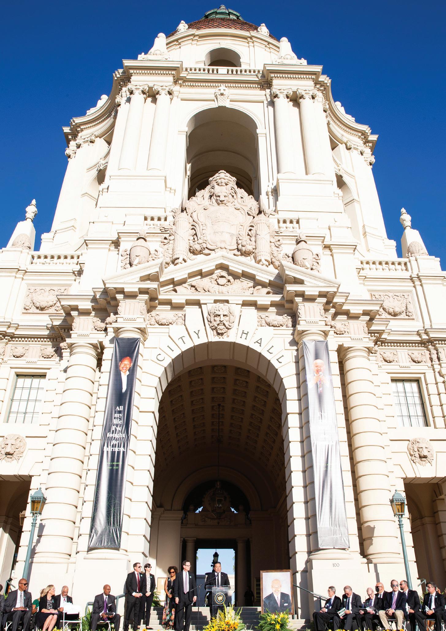 On Sept. 30, family, friends and community leaders joined in Pasadena City Hall’s Centennial Square to honor the life of District 3 Councilmember John J. Ken nedy, who died on July 21. The memorial service reflected upon and celebrated the achievements of Councilmember Kennedy and his lasting impact on the Pasadena community.