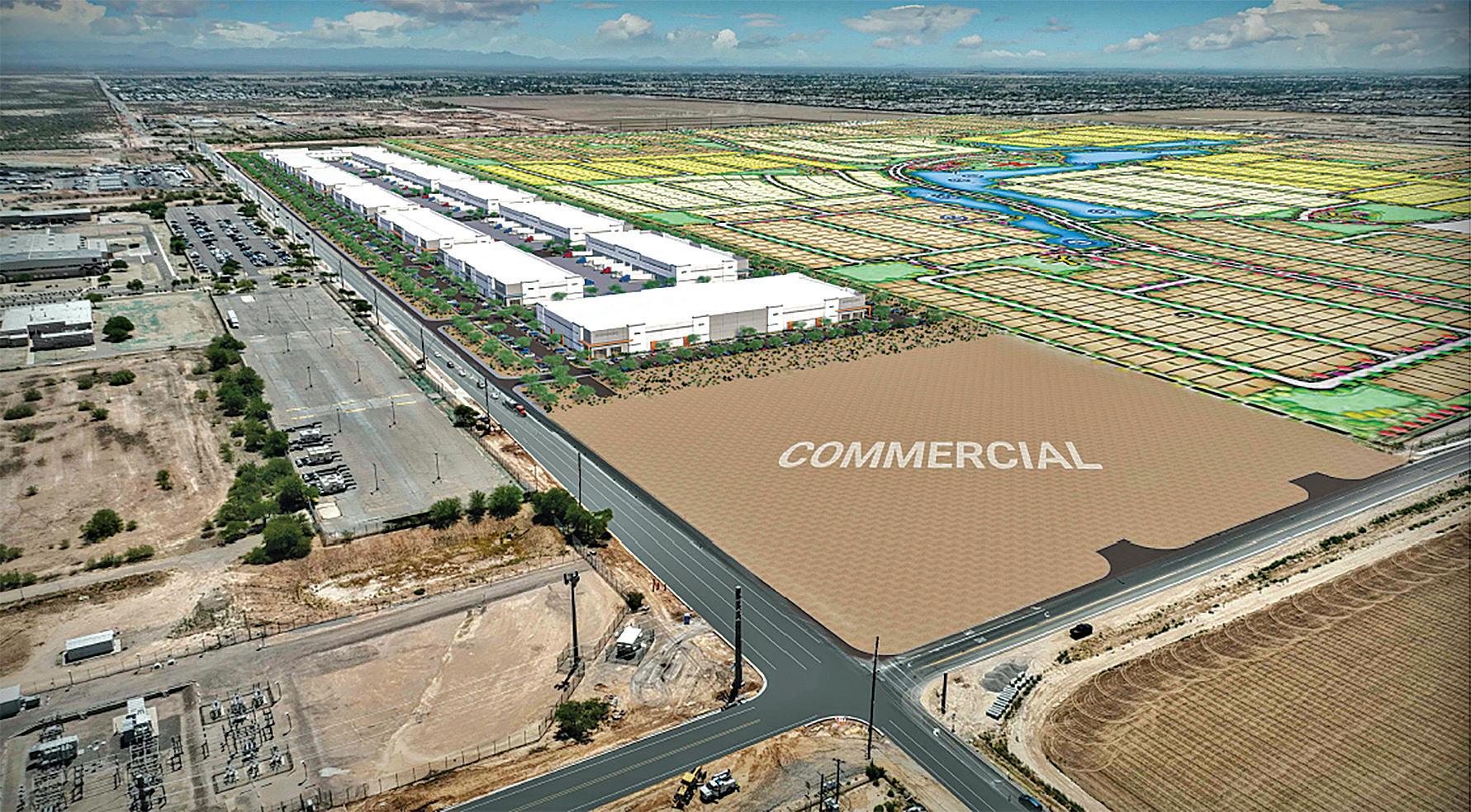 Thompson Thrift Commercial, a national real estate company, has paid Queen Creek-based Barney Farms about $30-million for 67 acres of land at the southwest corner of Germann and Meridian roads for the first phase of a mammoth light industrial center.