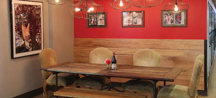Inside the kitchen, Tom’s carefully selected meat is smoked for 14 hours to prepare barbeque that attracts visitors, locals and employees in the area, who often hold meetings in its cozier seating areas. ere is an in-house bakery and special care was taken to select local coffee.
