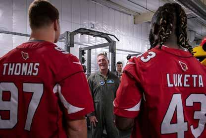 Arizona Cardinals players visited Luke Air Force Base in November to learn about the airmen and travel on familiarization flights, which allow civilian and military personnel to learn about flight operations that they might not