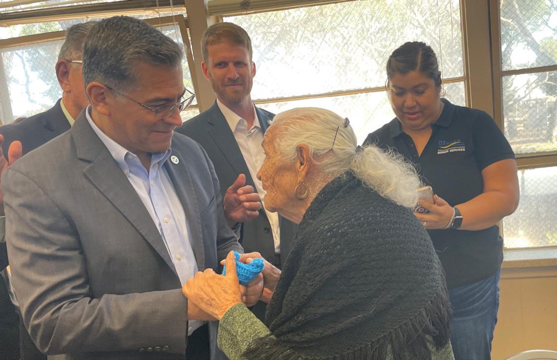 Virginia Velasco, aged 96, pre sented Becerra with a special gift she had made by hand herself, a blue knitted cell phone holder. Vel asco’s daughter Mayra Ceja works at the center and told the Ventura County Reporter about her moth er’s gift.