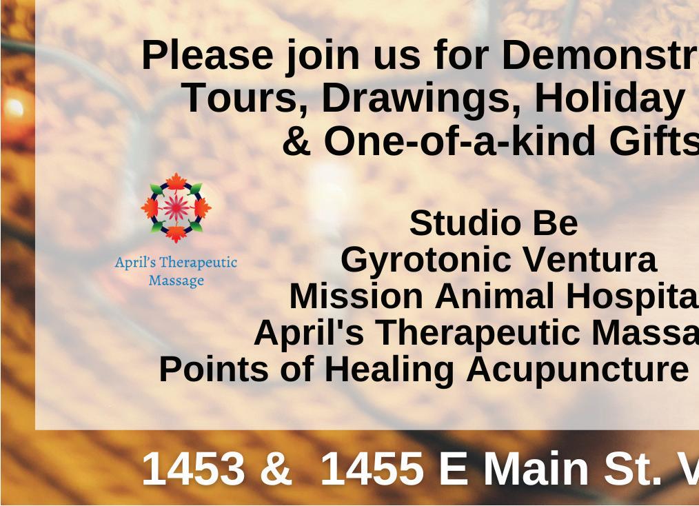 S. Laurel St., Ventura (building next to the church). For more information call Amy at 805-340-5882. Donations only.