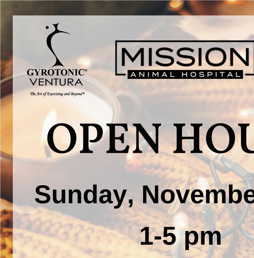 Because we care about your Health! Gr ossman Imaging Centers We are offering this low-cost screening for the month of November $65 SCREENING MAMMOGRAM* *Cash only price, must be paid at the time of service. $90.00 with Screening 3D Tomo $150 SCREENING MAMMOGRAM* With DEXA $185.00 with Screening 3D Tomo *Cash only price, must be paid at the time of service. 2151 E. Gonzales, #101, Oxnard | 2705 Loma Vista Rd., #100, Ventura Mammography provided for you at Grossman Imaging Centers Call Today for Your Appointment. (805) 988-0616 www.GrossmanImagingCenter.com ProvidingDigital Mammography in Ventura andOxnard Many Ways to Carve a Wave Ventura hosts waveski, bodysurfing and Queen of the Cove competitions Xavier Becerra in Oxnard Veterans Day De Colores Festival MONTH FREE Cover: A waveski surfer making some expert moves in Ventura.