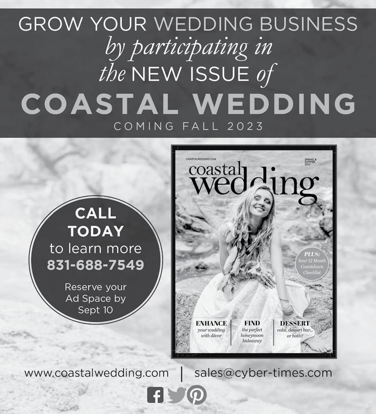 The Times Publishing Group, Inc., publishers of the Aptos Times, a bi-monthly publication, the Capitola Soquel Times and Scotts Valley Times, each printed monthly, Coastal Weddings Magazine, Coastal Home and Garden Magazine, Aptos’ Fourth of July Parade Official Program Guide and Capitola’s Summer Festivals Official Program Guide, is owned by Patrice Edwards. Entire contents ©2023. All rights reserved. Reproduction in any form is prohibited without the publisher’s written permission