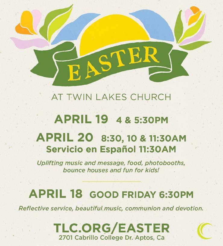 The city of Watsonville hosts Egg Hunt Eggstravaganza for kids ages 3-13 at Pinto Lake City Park. No charge to attend.