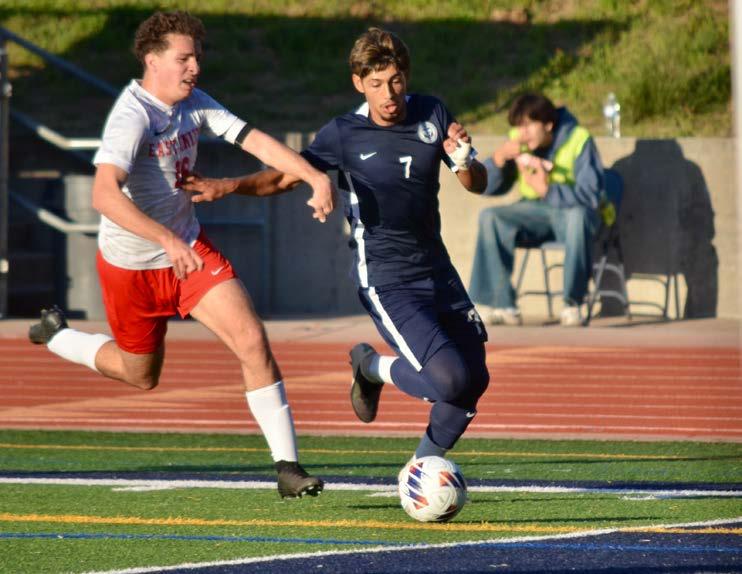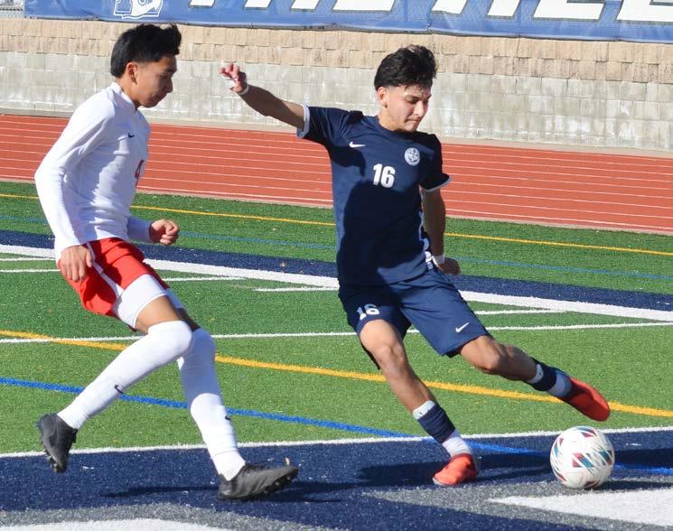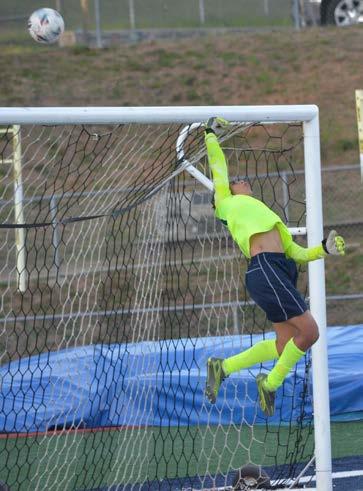 kick due to a penalty, but goalie Julian Almand made a nice save. Then, at the 20-minute mark, Almand made the save of the game. A breakaway by the Lancers led to a shot on goal that rocketed toward the top of the goal, but Almand leaped and stretched his right arm out to knock the ball over the top of the bar and keep his team in the lead.