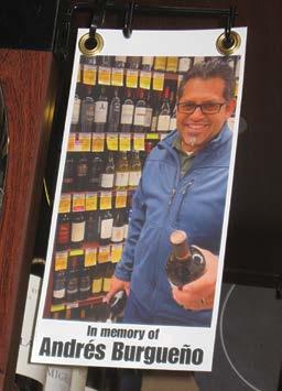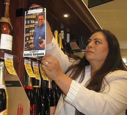 More than 50 people crowded around the wide aisle of Safeway ... to witness and applaud the new signs installed over the aisles of the wine department, honoring the “Wine Guy” Andres Burgueno. Full Story page 24