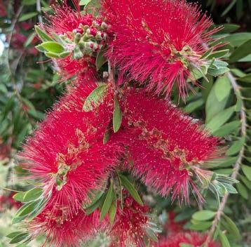 Like oleander and junipers, lemon bottlebrush, Callistemon citrinus, has become passe. It was a victim of its own practicality. It was so popular that it became overly common. Yet it is just as practical now as it was then. It is resilient enough to survive within medians of freeways with minimal irrigation. In less exposed situations, it might require no irrigation.