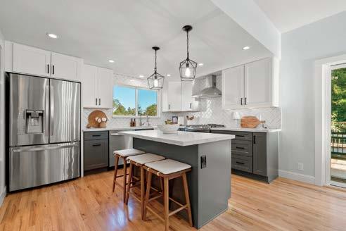 t h e m a i n l i v i n g s p a c e , e s t a b l i s h i n g a w a r m a n d c o z y a m b i a n c e . T h e u p d a t e d w i n d o w s a n d m u l t i p l e s k y l i g h t s c r e a t e a n a b u n d a n c e o f n a t u r a l