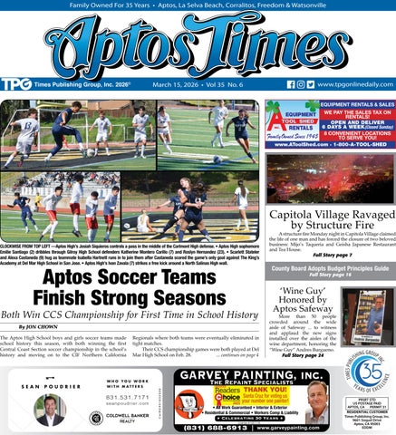 The Times Publishing Group, Inc., publishers of the Aptos Times, a bi-monthly publication, the Capitola Soquel Times and Scotts Valley Times, each printed monthly, Coastal Weddings Magazine, Coastal Home and Garden Magazine, Aptos’ Fourth of July Parade Official Program Guide and Capitola’s Summer Festivals Official Program Guide, is owned by Patrice Edwards. Entire contents ©2026. All rights reserved. Reproduction in any form is prohibited without the publisher’s written permission