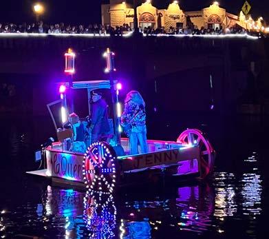 The boat parade was the highlight for many. Featuring five lighted boats, or rather barges, each was to represent the theme “Vacation Snapshots,” while using lights and music. The entries were pretty inventive. The Capitola Historical Museum elected Hawaiian Gardens as its theme and recreated a little dance room from the historic Prohibition-era business in Capitola. The Jewel Boxers team turned their barge into a smart phone that showed different snapshots from a vacation.