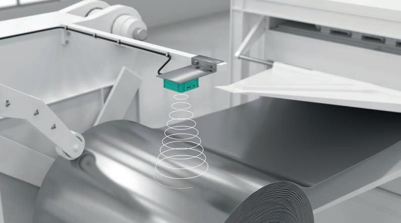 In Produktionsanlagen, die Rollenmaterial wie Papier, Folien oder Blech verarbeiten, misst das Gerät den abnehmenden Rollendurchmesser und damit den Materialverbrauch. Bei Erreichen eines definierten Grenzwerts kann automatisch Nachschub angefordert werden. Auch hier spielen raue Bedingungen wie Staubentwicklung, ölige Anhaftungen, Vibrationen oder hohe Temperaturen für die Messstabilität praktisch keine Rolle. Da derselbe Sensortyp verschiedene Aufgaben abdecken kann, werden Integrationsaufwand und Ersatzteilvorhaltung deutlich reduziert.
