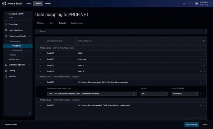 Das Anybus-Studio unterstützt den gesamten Entwicklungsprozess – von der Definition der Prozessdaten über Funktionsfestlegung, Test und Validierung bis hin zur automatischen Erstellung der Schnittstellendokumentation. Konfigurationen lassen sich versionieren, kopieren, anpassen und auf andere Geräte übertragen, was den Rollout ganzer Produktreihen beschleunigt. Auch Updates über den