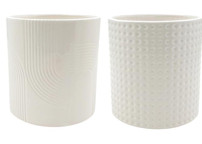 Beautiful white pots in three designs and outstanding value. Add a 140mm flowering pot and one instant present.