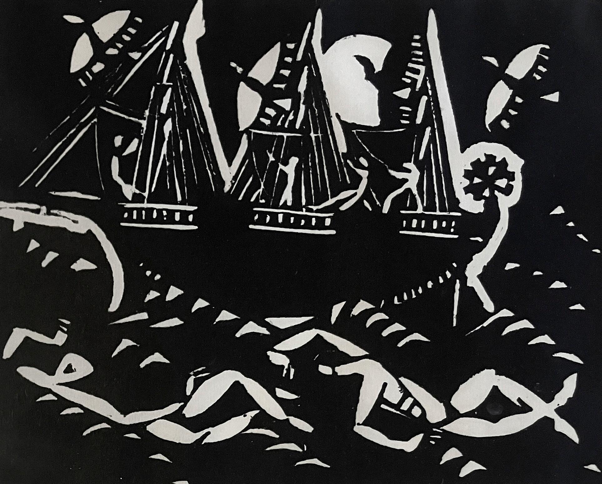 Opposite Page: Bror Julius Olsson Nordfeldt, Hero (Provincetown) , c. 1916, color woodcut, 12” x 12”