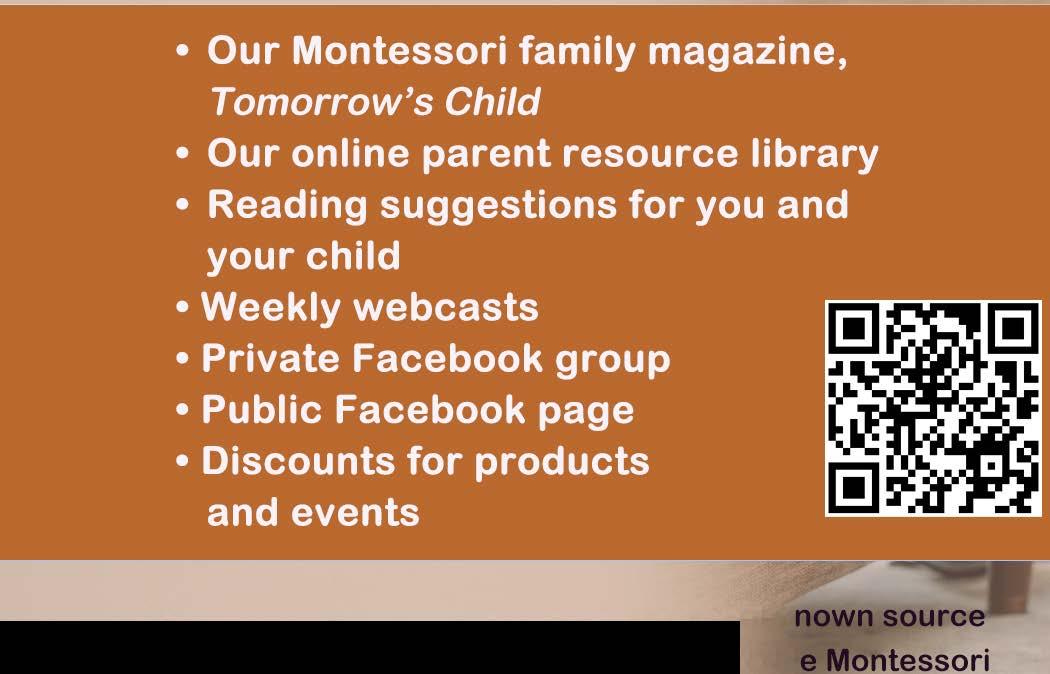 Tomorrow’s Child (ISSN 10716246), published four times a year, is the official magazine of The Montessori Foundation, a non-profit organization. The opinions expressed in Tomorrow’s Child editorials, columns, and features are those of the authors and do not necessarily represent the position of the magazine or The Montessori Foundation. Acceptance of advertising does not represent the Foundation’s endorsement of any product or service.
