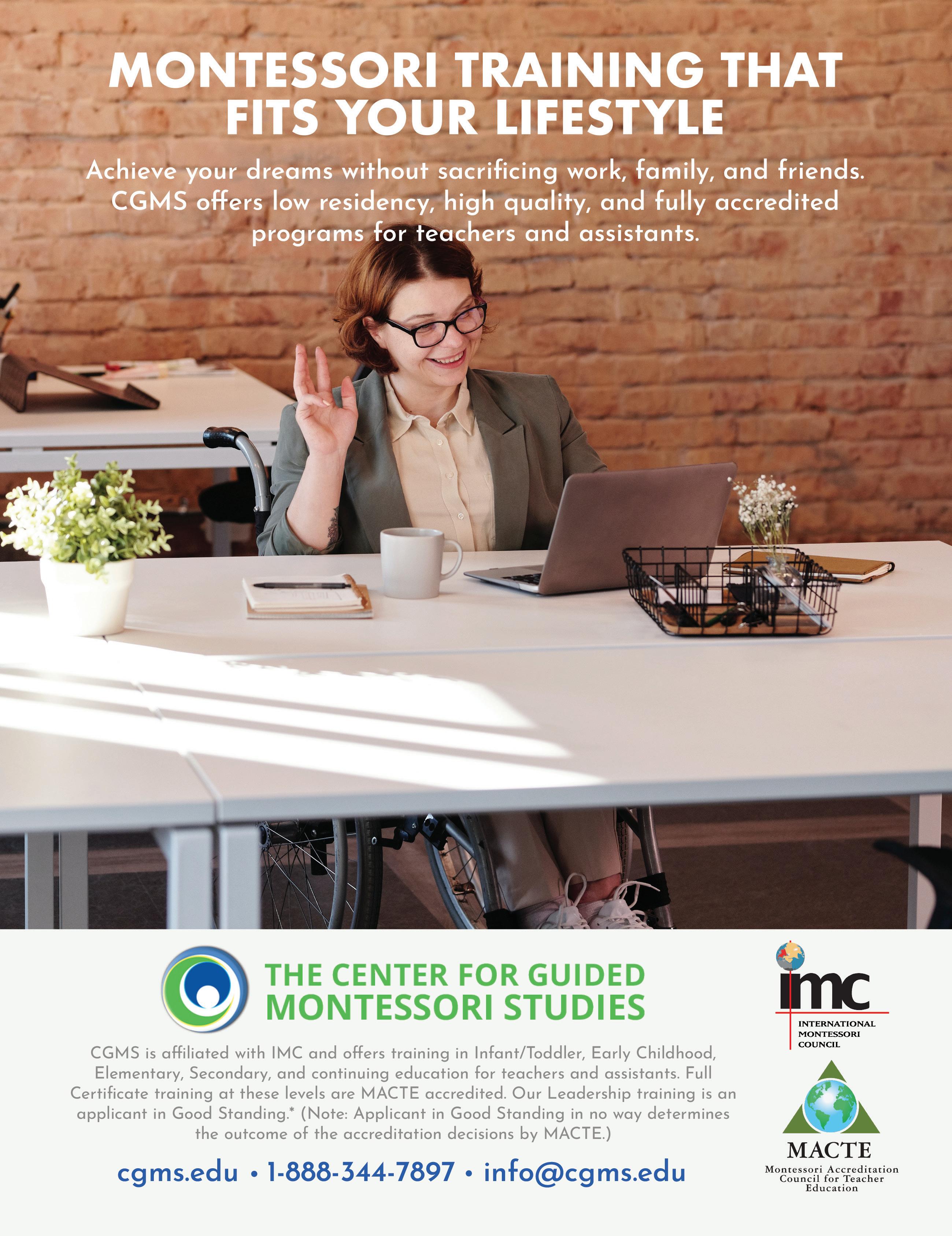 Montessori Leadership is the official magazine of the International Montessori Council, a non-profit organization. The opinions expressed in Montessori Leadership editorials, columns, and features are those of the authors and do not necessarily represent the position of the magazine or the IMC. Acceptance of advertising does not represent endorsement of any product or service.