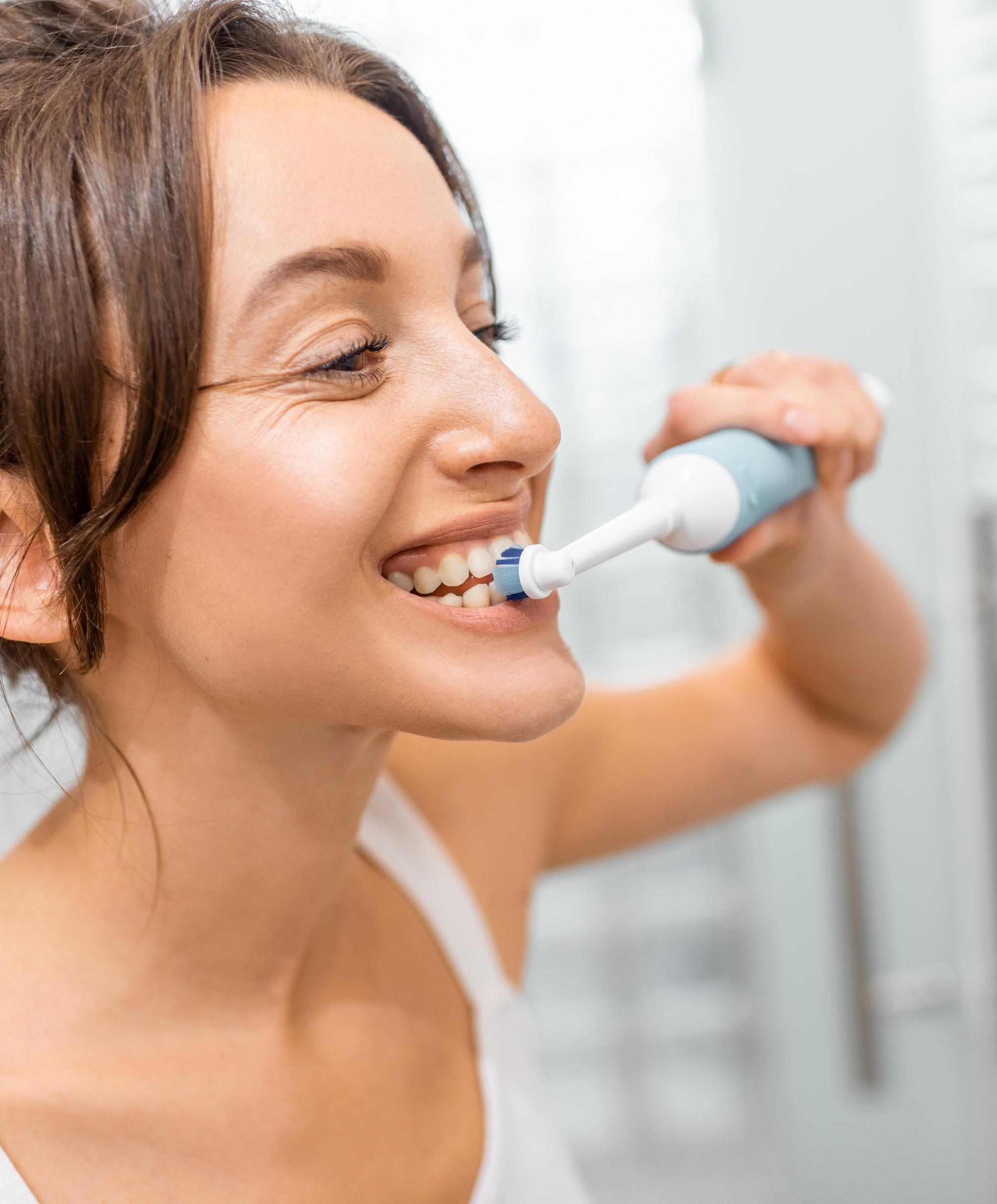 Electric toothbrushes deliver thousands of movements per minute, removing plaque more effectively than manual brushes, especially along the gumline, for healthier teeth and gums.
