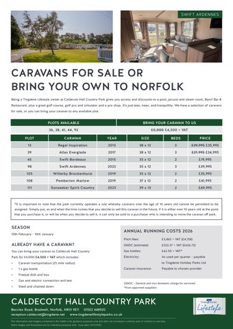 *It is important to note that the park currently operates a rule whereby caravans over the age of 10 years old cannot be permitted to be assigned. Simply put, as and when the time comes that you decide to sell this caravan in the future, if it is either over 10 years old at the point that you purchase it, or will be when you decide to sell it, it can only be sold to a purchaser who is intending to move the caravan off park.