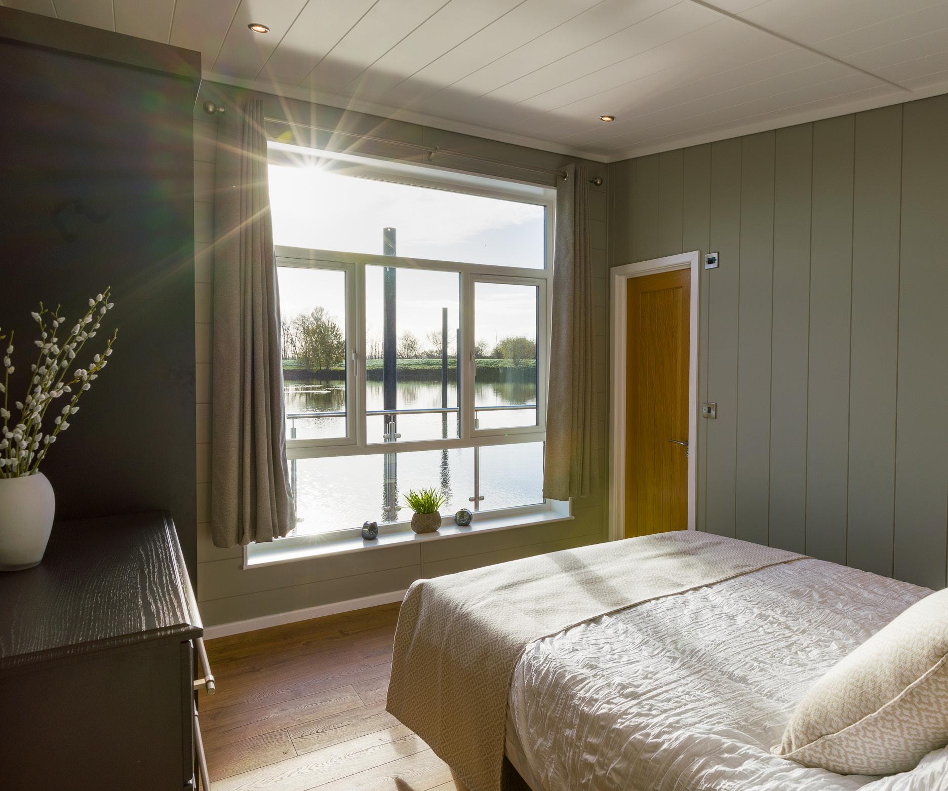 From the moment you step foot in the smart glazed hallway and glimpse the spacious open plan living space, you’ll know this floating home has been designed with peace and tranquillity in mind. The full height windows throughout allow natural light to stream through the space and