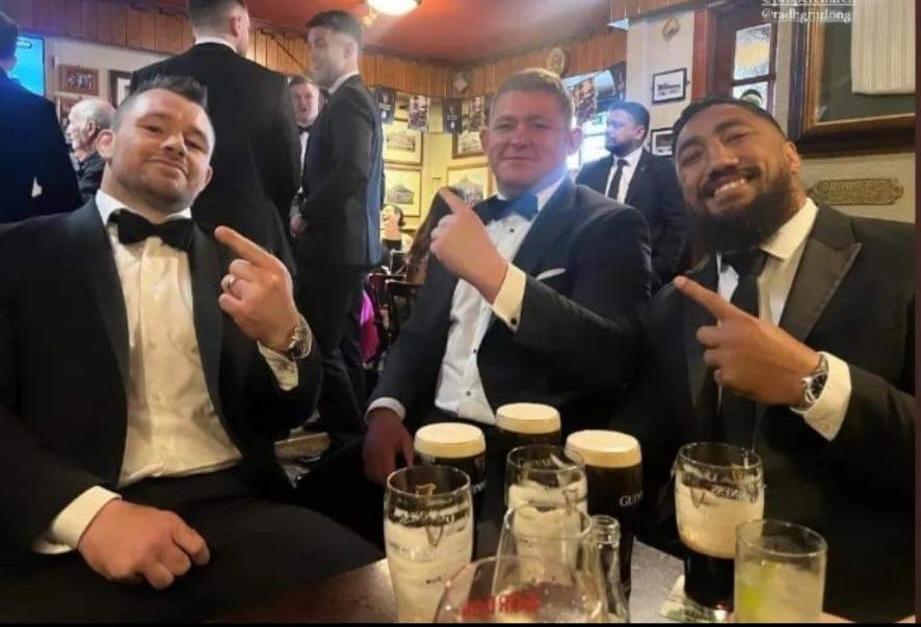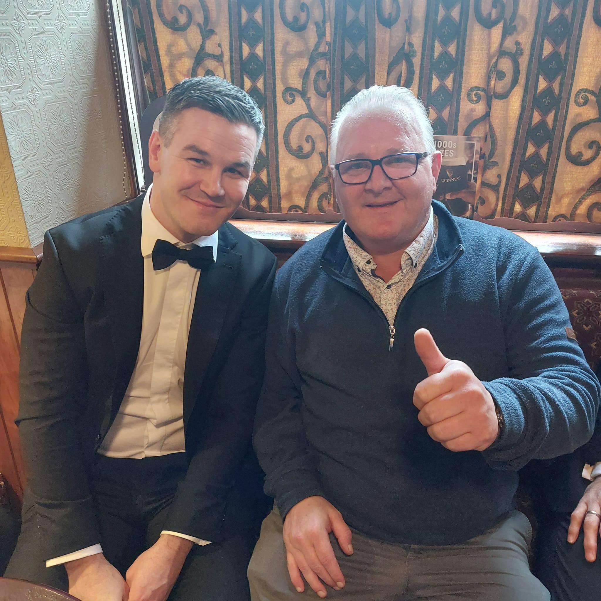 away. But it wasn’t the only stops that the players and their friends and partners made. As is almost customary in Cashel for a wedding, you have to stop at Foleys Pub, before and after (and for some hardy souls, even during), the tie is knotted. This particular wedding was no exception, and who better to welcome the Irish rugby team, than one of the biggest supporters of Cashel and Munster rugby