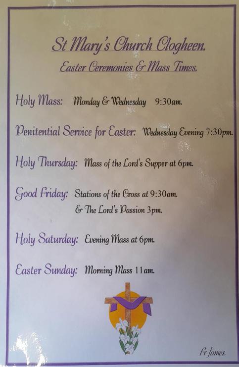 • Easter Sunday 31st–Mass at 9.30 and 12.00.