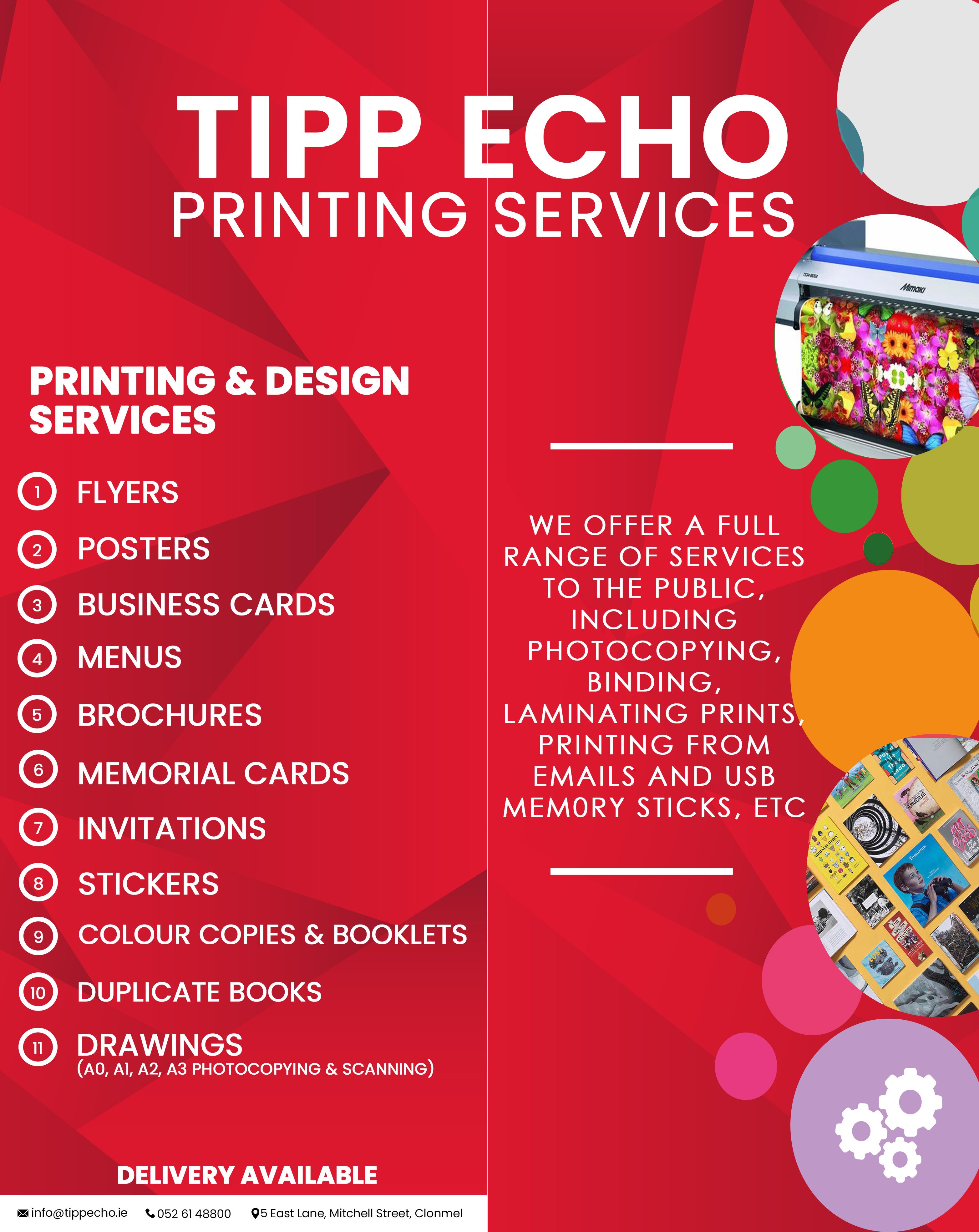 If you have a story, news of an event or you know something that we would be interested in. Email info@tippecho.ie or call 052 61 48800