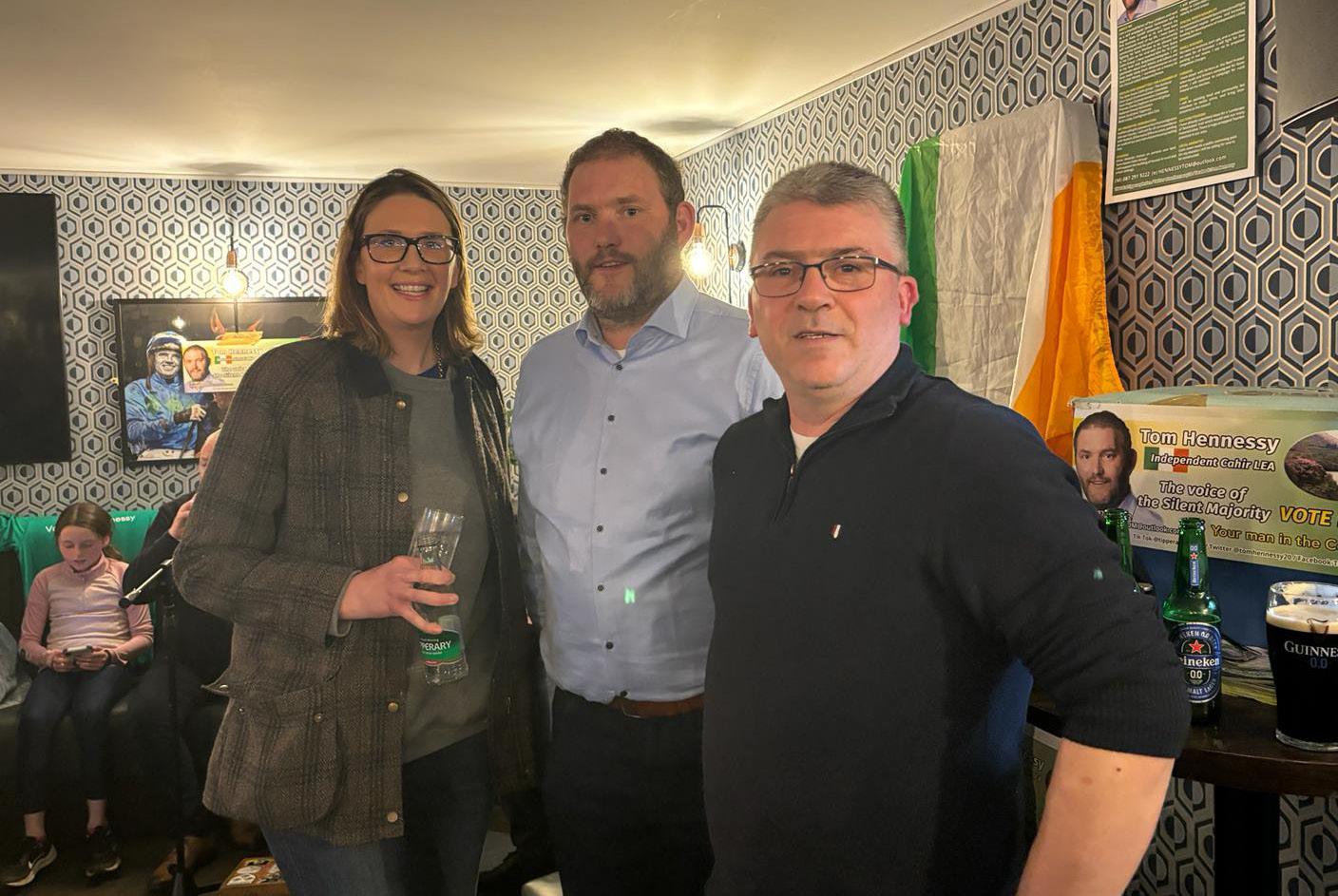 All of these were central to Tom’s message when he addressed his supporters in the Abbey Tavern in Cahir on Saturday night. And that message was received warmly. Surrounded by his family and friends, Tom’s night was entertained by Rebel Hearts musician Paudie Coen and Golden musician William Boles, who had the crowd singing and dancing. A special mention must also go to Nessa Coen, the ten-year-old daughter of Paudie, who proved that the musical apple didn’t fall far from the tree, giving a rousing rendition of a number of Irish songs, in a style that far outweighed her tender years. There’s no doubt that while Tom Hennessy is a name to remember in political circles,